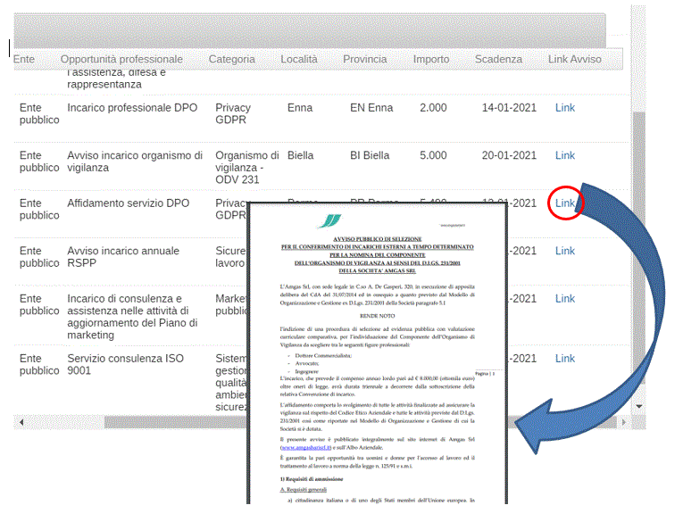 Puoi inoltre accedere alla bancadati online Avvisi ricerca consulenti enti pubblici e privati, e accedere direttamente alla documentazione o all’annuncio on line per inviare la tua candidatura.